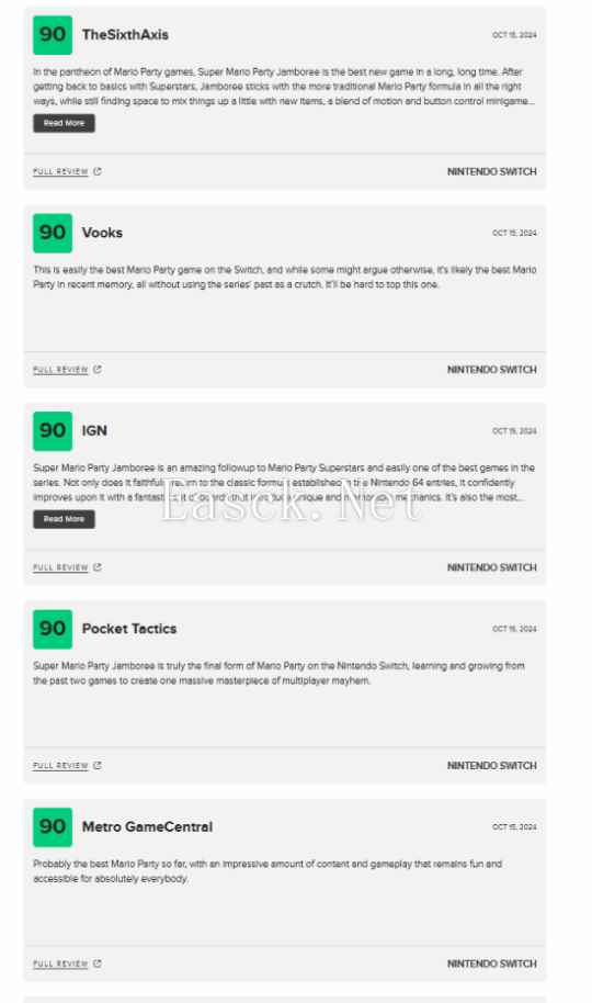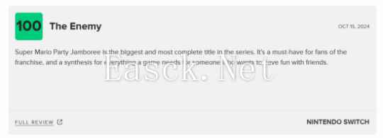 最低分来自Eurogamer,称虽然这是迄今为止最大的马里奥派对游戏,但在几乎每个环节上都未能找到乐趣。