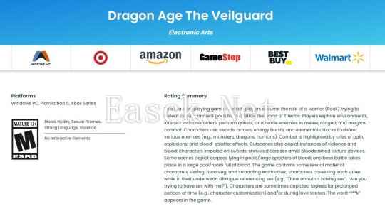 近日,《龙腾世纪 4:影障守护者》通过了 ESRB 评级,被评为 “M” 成人级 17+。该作包含较多大尺度内容,比如一些过场动画展示了暴力和流血场景,有角色被剑刺穿,刑具旁有干瘪的尸体,还有躺在血泊中的尸体等。同时,游戏中还有性内容,角色会接吻、呻吟、互相骑跨,穿着内衣互相爱抚,对话中也提及一些性行为。角色有时会裸露上身,或在恋爱场景中裸露上身。此外,游戏中还出现了一些脏话。整体来看,该游戏较为血腥,尺度较大。