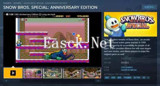 《雪人兄弟特别:周年纪念版》(SNOW BROS. SPECIAL: ANNIVERSARY EDITION)Steam商店页面正式上线,发售日期待定,不支持中文。 Steam商店页面:>点击此处