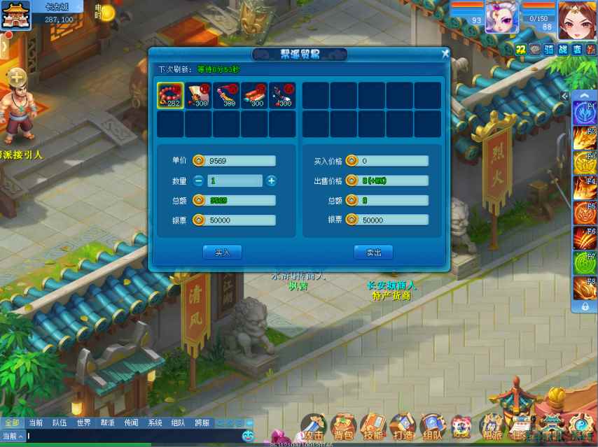 帮派跑商也是个获取帮贡的好方法。任务中,师爷会给你一张5万元银票,你需要利用这些本金,在多个地图的特产货商那里来回奔走,倒卖物资赚钱。完成任务后也有大量帮贡进账。 【上交日志 换取帮贡】