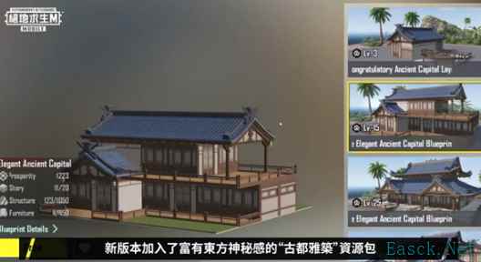 2、全新武器:P90-独眼蛇、P90钢铁阵线。 五、更新玩法 1、版本中还会另外开放新的家园构建大赛,只需当玩家的家园繁荣度大于200就能报名参加。 2、而且还增加了“古都雅筑”资源包。