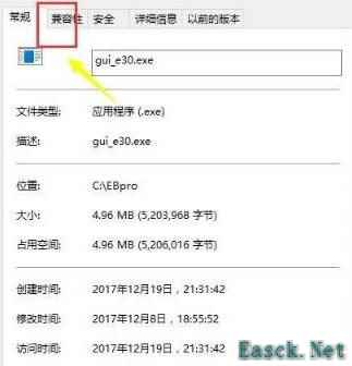 3、在属性界面切换到“兼容性”选项卡;