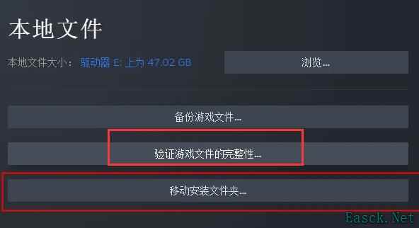 6、点击“验证游戏文件的完整性”,查看有没有需要安装的运行库,验证完成后可以选择“移动安装文件夹”,移动到没有中文路径的文件夹内;