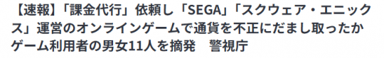多名玩家涉嫌世嘉以及SE游戏代理氪金诈骗被捕