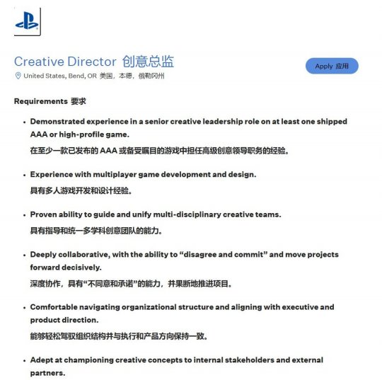 索尼互动娱乐旗下Bend工作室在推出《往日不再》六年多后,似乎正在开发新作。这个曾打造2019年动作冒险生存恐怖游戏《往日不再》的团队,目前正在为某未命名游戏项目招募经验丰富的创意总监。 ![]() 近日在招聘平台Greenhouse的一则PlayStation招聘帖显示,其正在为“打造下一部作品”招募创意总监,并明确表示该项目已由Bend工作室投入开发。虽然招聘措辞未透露具体细节,但任职要求中注明申请人需具备多人游戏开发设计经验,这强烈暗示该工作室新作将是多人游戏类型。 ![]() 新作的可能性或许预示着这家工作室正迎来转机。与今夏达到顶峰的行业大规模裁员和工作室关闭潮同步,Bend工作室也在六月经历了裁员。据报道,此次重组导致约40名员工被解雇,约占工作室总人数的30%。 ![]() 除上述不利消息外,七月还有传言称Bend工作室取消了多款未公布的游戏。裁员后,一名前员工的领英页面显示其曾参与“多个被取消/未公布项目”,包括负责开放世界事件、任务、谜题和系统的开发。在此之前的今年一月,曾有消息称PlayStation取消了两款正在开发的实时服务游戏,其中一款据传由Bend工作室主导。 |