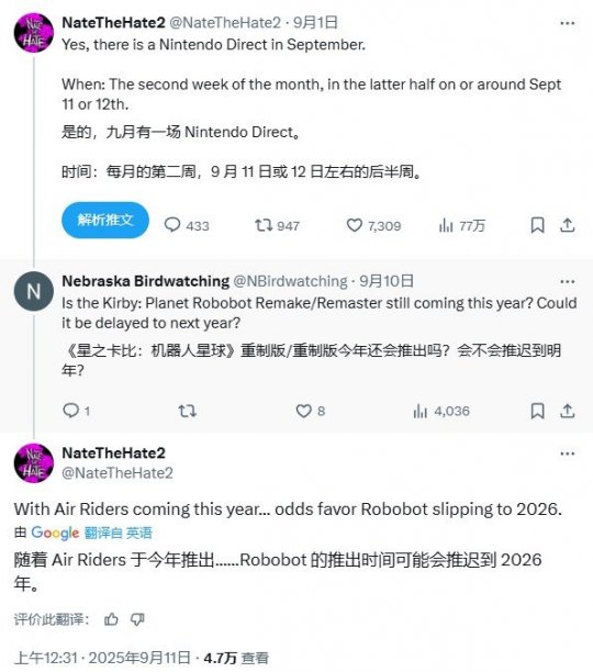 任天堂粉丝一直热切期待旗下经典IP的最新动态,无论是新作发布还是重制计划都引发广泛关注。近日业内人士的讨论在社交媒体上掀起波澜,让玩家对这家公司旗下多款人气作品的未来规划充满好奇。 ![]() 然而,期待《星之卡比:机械星球》重制版的玩家可能需要调整预期了。知名业界爆料人Nate the Hate最近在社交平台透露,这款游戏可能会推迟到2026年发售。当被问及项目时间表时,他回应称:“鉴于《飞天骑士》将于今年推出……《机械星球》很可能延至2026年。” 根据爆料人的说法,这款原本推测将于2025年问世的重制作品,现在可能推迟至2026年。Nate的言论暗示开发团队正在优先处理该项目,从而导致卡比重制版延期。 ![]() 尽管Nate the Hate过往爆料可信度较高,但玩家仍需谨慎看待这一消息。正如他本人强调的“仅供参考”,这并非官方确认,而是基于行业信息的推测。 ![]() 对卡比系列粉丝而言,若延期属实,《机械星球》重制版或将与游戏十周年(2026年)同步推出,为这款经典作品带来更具纪念意义的庆祝方式。不过在所有信息得到任天堂官方确认前,一切仍存在变数。 |