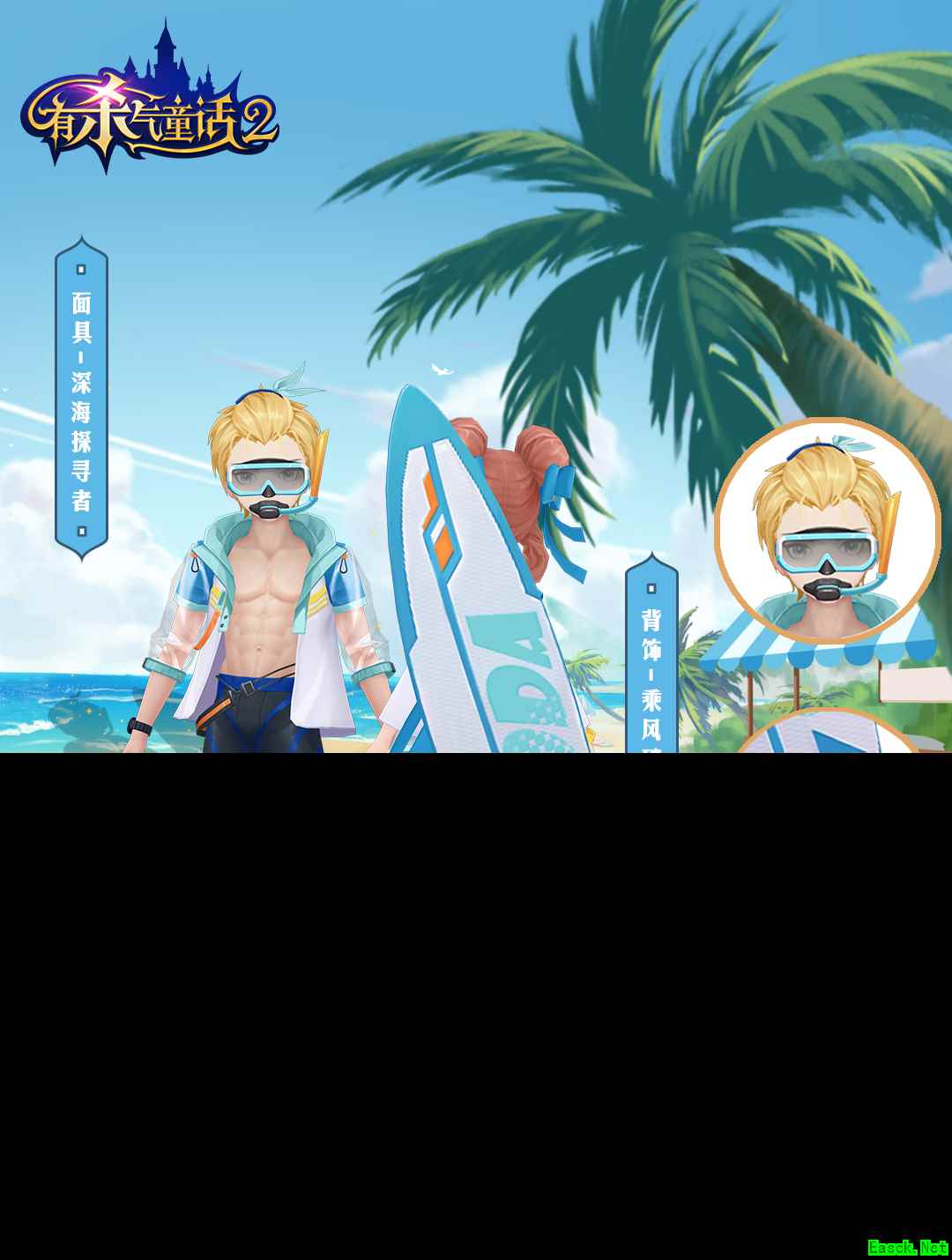 夏日海边游玩,运动道具缺一不可!奥兹已为各位冒险者们准备好【深海探寻者】潜水装备,再带上背饰【乘风破浪】,海边冲浪的无限激情立即显现!