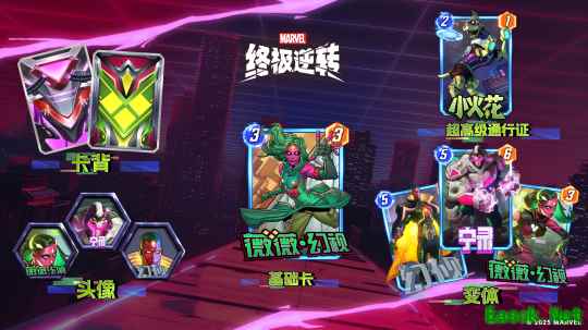 购买【幻视未来】赛季通行证,就可以获得全新的角色「薇薇·幻视」。随着通行证等级的提升,还可以解锁全新变体、头像、卡背和其他资源。
