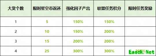 根据抽到当期大奖的个数,返还相应的【限时星空币】。返还【限时星空币】的时间为下个赛季的首日,通过邮件发放。