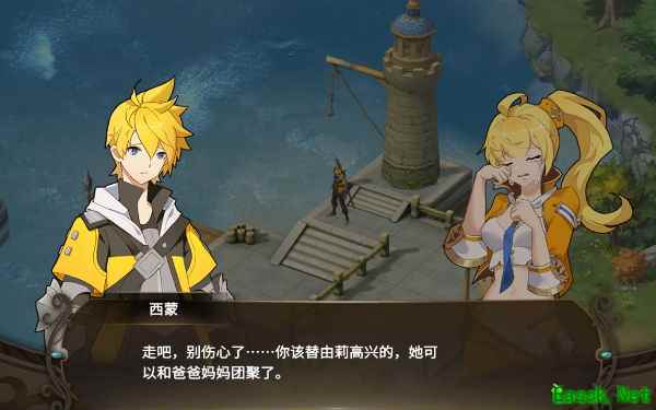 原来在雷鸣大陆上湖畔镇的白瑙湖边,男主角西蒙本想向小女孩由莉询问一位叫赫丽的女孩下落,不料却碰到魔物,凭借一番激斗后西蒙总算消灭魔物。然而在场的由莉早已被魔物吓哭。