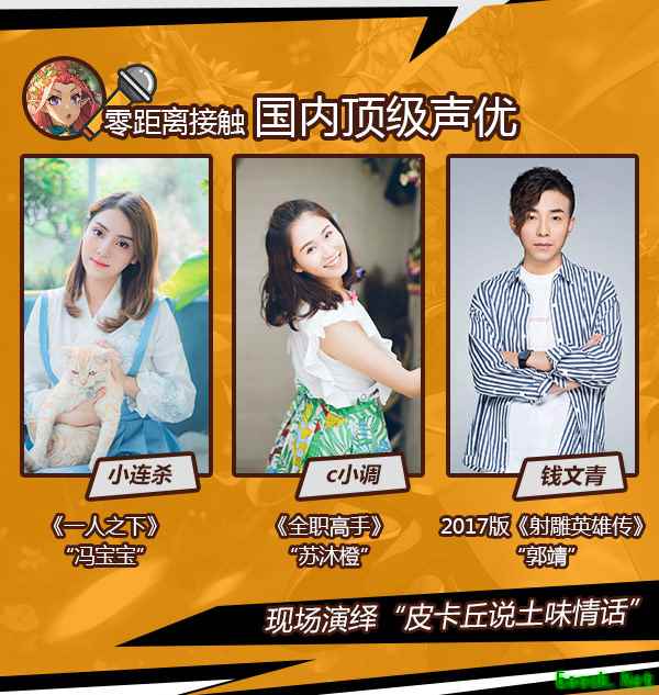 在现场,《终焉誓约》将举办盛大的玩家见面会,邀请了多名二次元KOL大大到场!《一人之下》“冯宝宝”声优小连杀、《全职高手》“苏沐橙”声优C小调、2017版《射雕英雄传》“郭靖”钱文青将现场演绎“皮卡丘说土味情话”、“兽人为你新闻联播”等脑洞场景,让你体会到什么叫“声优都是怪物”。