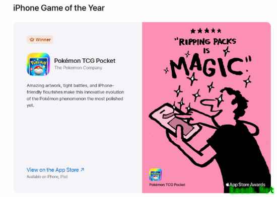 值得一提的是,在苹果总评选中,“年度最佳iPhone游戏”颁给了《宝可梦TCG口袋版》!