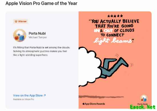 此外,《赛博朋克2077》当选“年度最佳MAC游戏”,“年度最佳iPad游戏”颁给了《渔帆暗涌》,《Porta Nubi》荣获“年度最佳Apple Vision Pro游戏”!