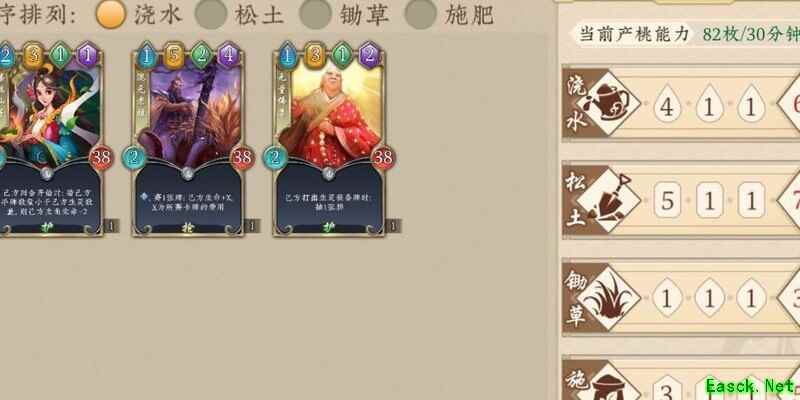 星官头顶数字表示工作能力,蓝色为浇水,金色为松土,绿色为除草,紫色为施肥。