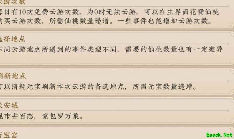 云游时会遇到类似取经门派的事件,选择后可能获得卡牌、星官、仙桃或魔桃等资源,也可能毫无收获。