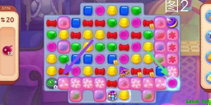 观察图2,紫色箭头指向的是吸尘器,绿色箭头则代表充电站。当吸尘器显示为绿色且数量为6时,可通过匹配相应的绿色元素进行消除,也可使用加速道具加快进程。成功收集6个绿色元素后,吸尘器将迅速移向下一个由绿色箭头指示的充电站,同时该行所有元素都将被彻底清除,带来流畅的游戏体验与视觉享受。