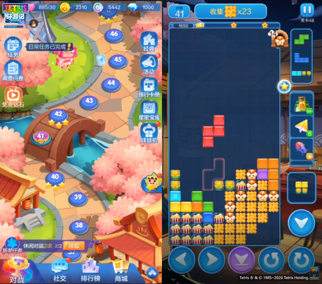 《俄罗斯方块环游记》也为广大喜欢竞技对战的用户打造了多种PVP实时对战玩法。俄罗斯方块对战玩法在国外已经成为流行趋势,每年都会举办俄罗斯方块世界锦标赛,能登上世界冠军舞台,成为每一个爱好俄罗斯方块玩家的终极梦想。针对国内用户玩重度游戏压力较大,以及对俄罗斯方块对战玩法认知相对陌生的情况,《俄罗斯方块环游记》主打轻竞技理念。强调单局对局时间短,操作简单易上手。在游戏中,玩家可以邀请好友1V1对战,与陌生人排位PK,甚至可以参加百人同场竞技的大乱斗。游戏还具备开房间功能,玩家可以邀请好友组队,及时沟通战术合纵连横,对敌方进行精准打击和集中围剿。轻竞技、强乐趣的特点,让对战玩法成为年轻用户享受《俄罗斯方块环游记》的不二之选。