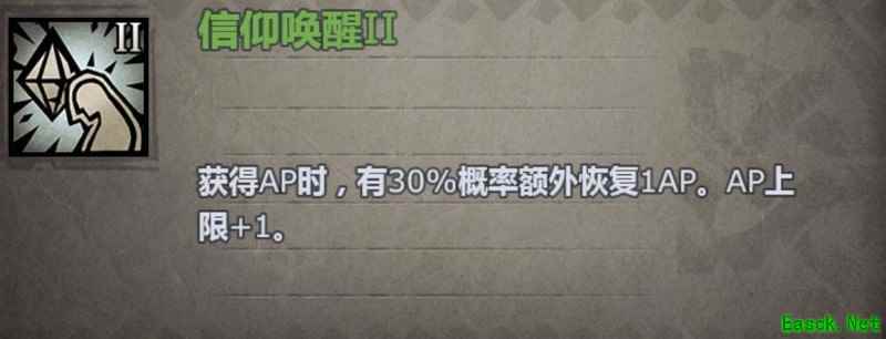 信仰唤醒:牧师或主教的被动技能,习得信仰召唤2级,需具备30点意志值方可激活。