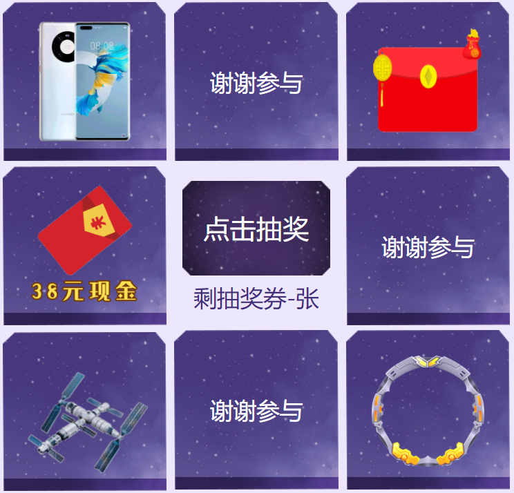 进入活动页面下载手游测试包,完成每日打卡签到、阅读测试返利计费详情等各项任务,即可获得抽奖券,有机会抽取华为手机mate40 pro、中国航天联名立体拼图、公测月卡合集、648红包等好礼。