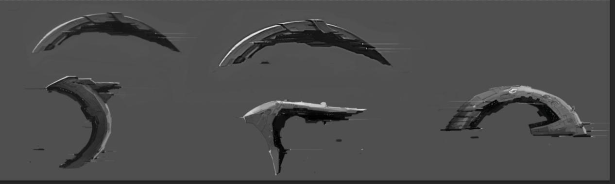 经过多个版本的迭代,得到了最终版本。船身轻盈具有速度感,既有月的意象也符合舰船的逻辑。