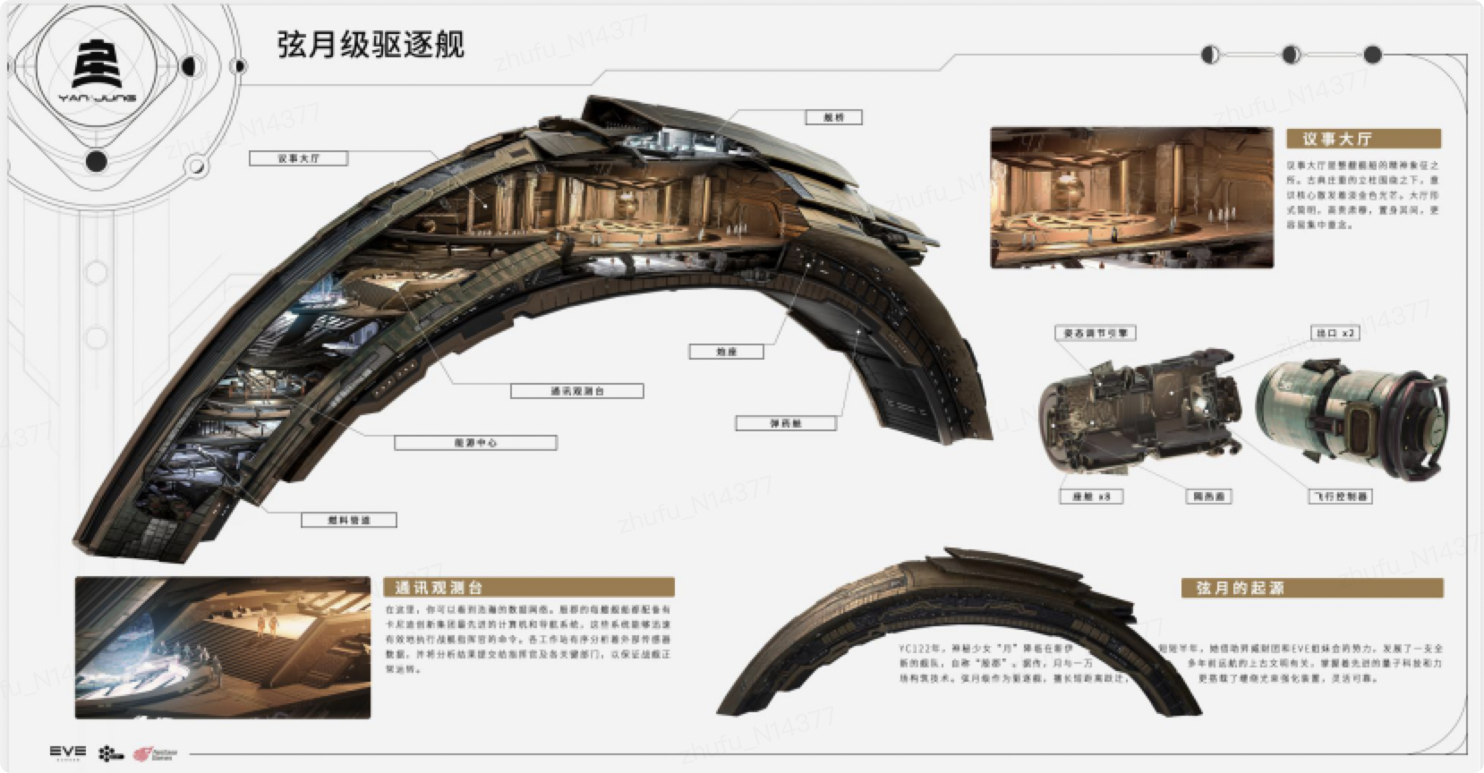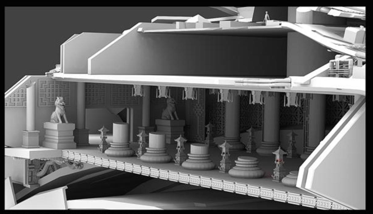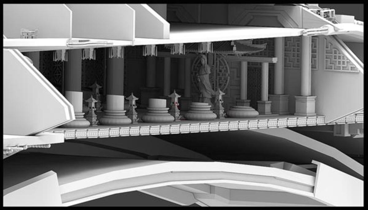 即使舰船的适用场景是在外太空、在未来,外国设计师对于中式物品依旧是传统的理解。经过沟通修改,形成了如下作品: