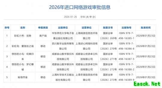 2026年1月游戏版号发布 :177款国产游戏获批,7款进口游戏过审核