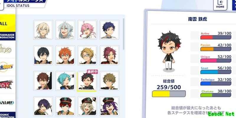 每位小偶像拥有六项属性,每项最高100点,但总属性值上限为500点。当总值达到500后,可指定两项属性进行调整:一项降低,另一项提升。每次打工若随机选中该偶像,便会将一点属性从被降项转移至被升项,实现属性再分配。