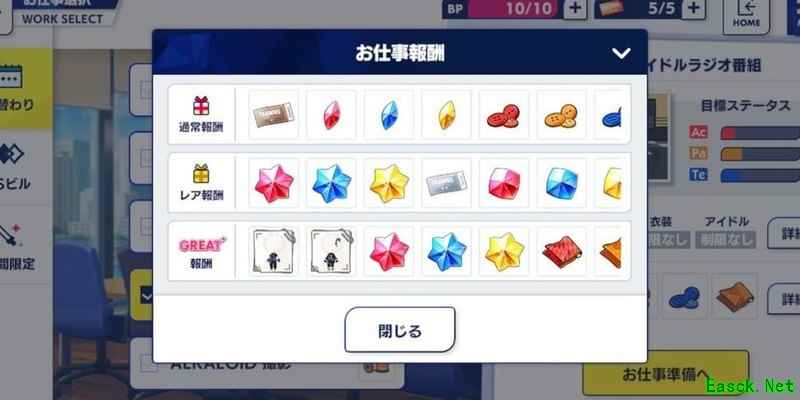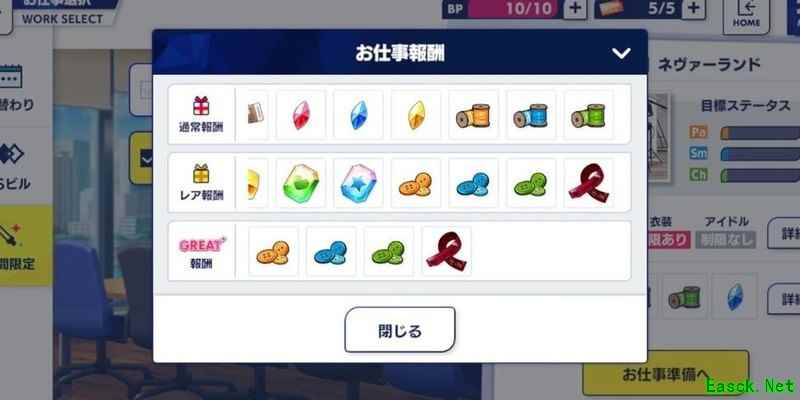 打工开始后,小偶像们将进行五次演出展示,每次展示都会推进进度条,累计最多可获得三个奖励箱,包括普通箱与金箱,掉落随机。通常演出结果为good,偶尔触发great,概率较低。出现great时可额外提升约5%进度,并多获得一次奖励机会,适合属性不足但运气较好的玩家冲刺高回报。