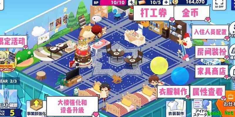 该界面可直接进入限时家具销售与限时打工页面,同时自动领取图中小偶像的限定服装,无提示直接放入背包。