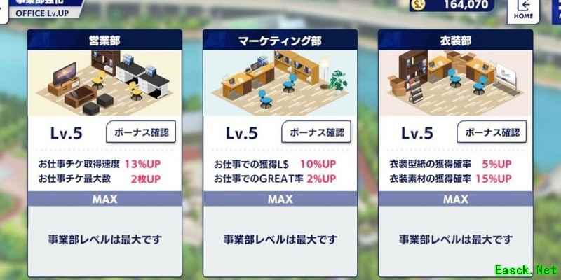 大楼升级后将开启更多奖励,包括商店新商品购买权限、增加入住偶像名额以及提升设备强化等级上限。