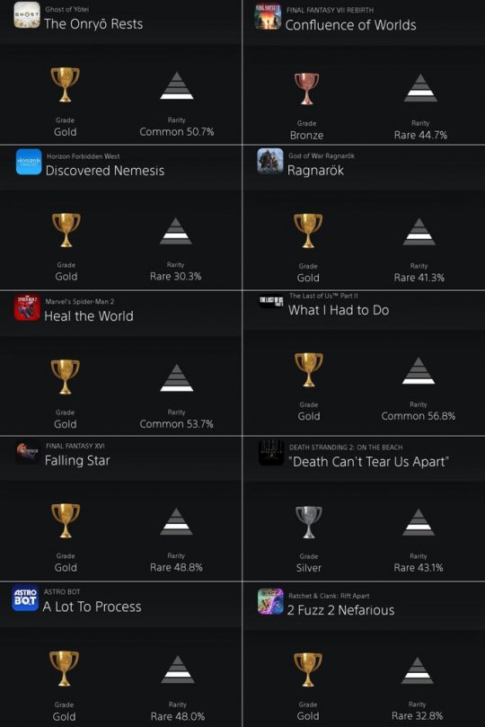 Playstation玩家通关率统计: