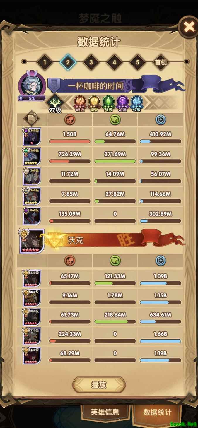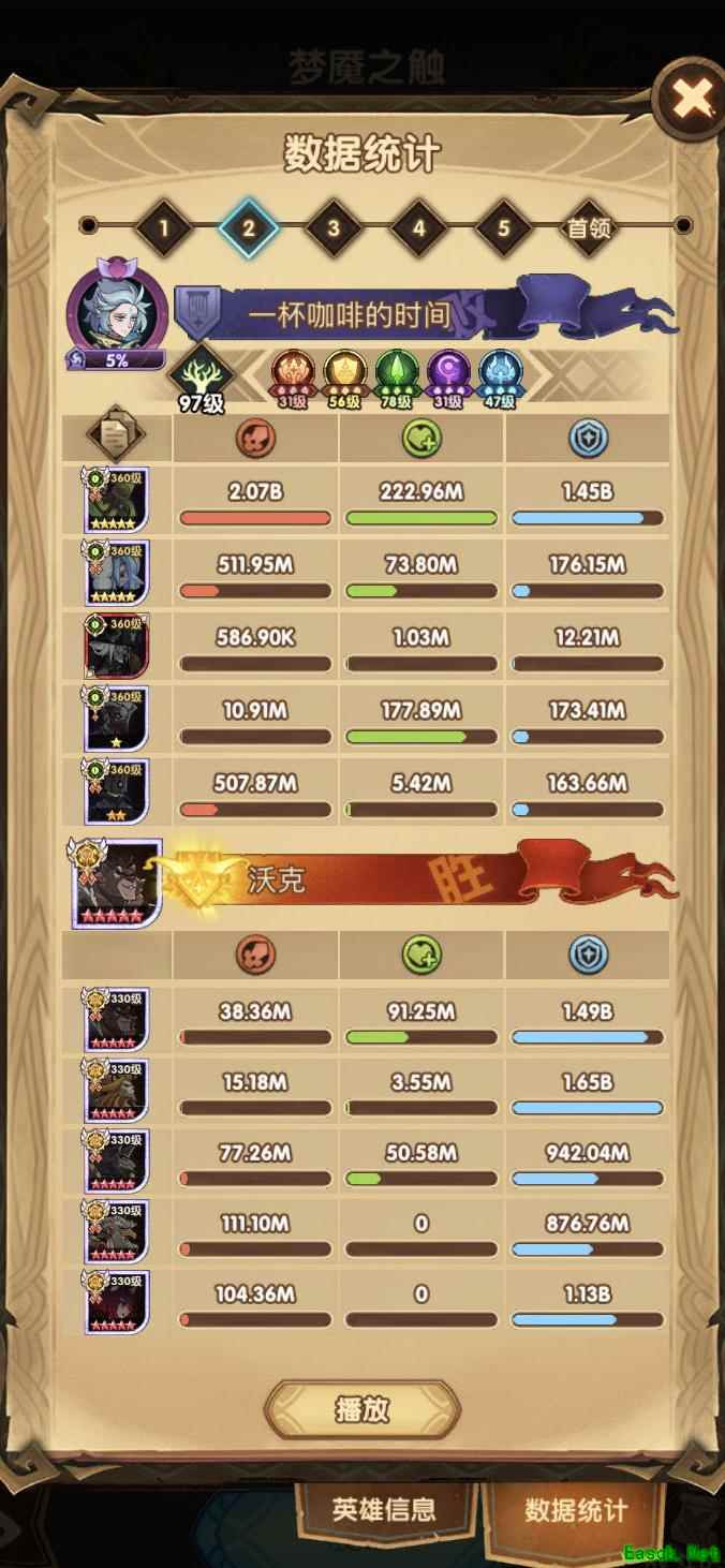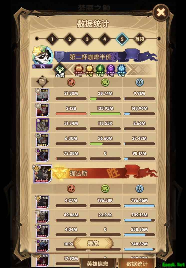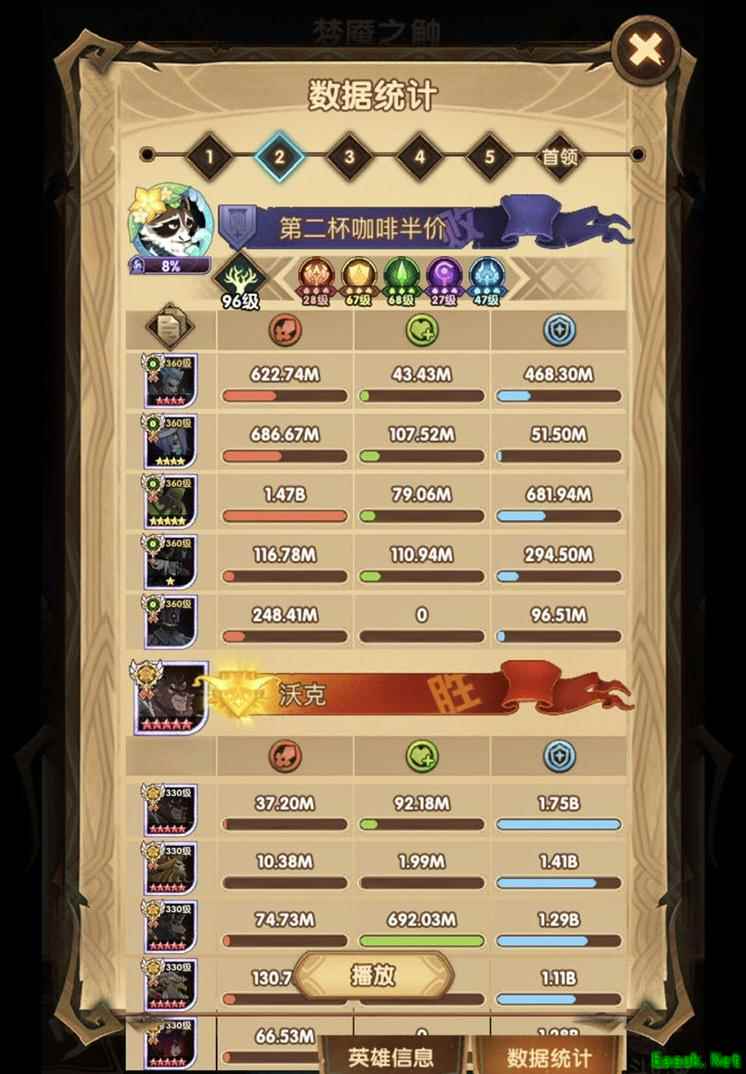 第二天队伍因缺少30级鬼医,首日亡灵阵容输出大减。幸得高练度船长佣兵支援,感谢嘟嘟世界协助调整阵容,替换禁卫后伤害达3B,生化人顺利脱衣。