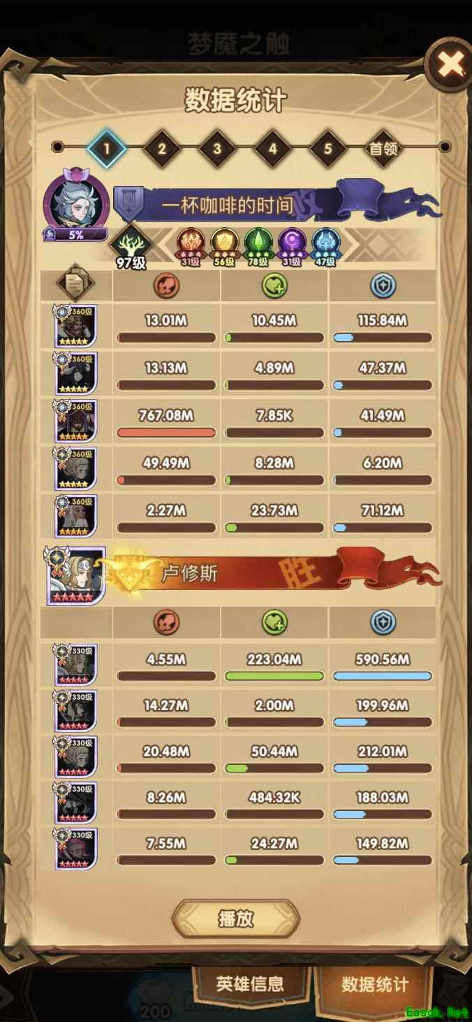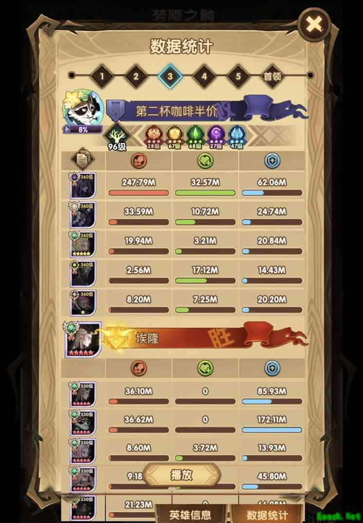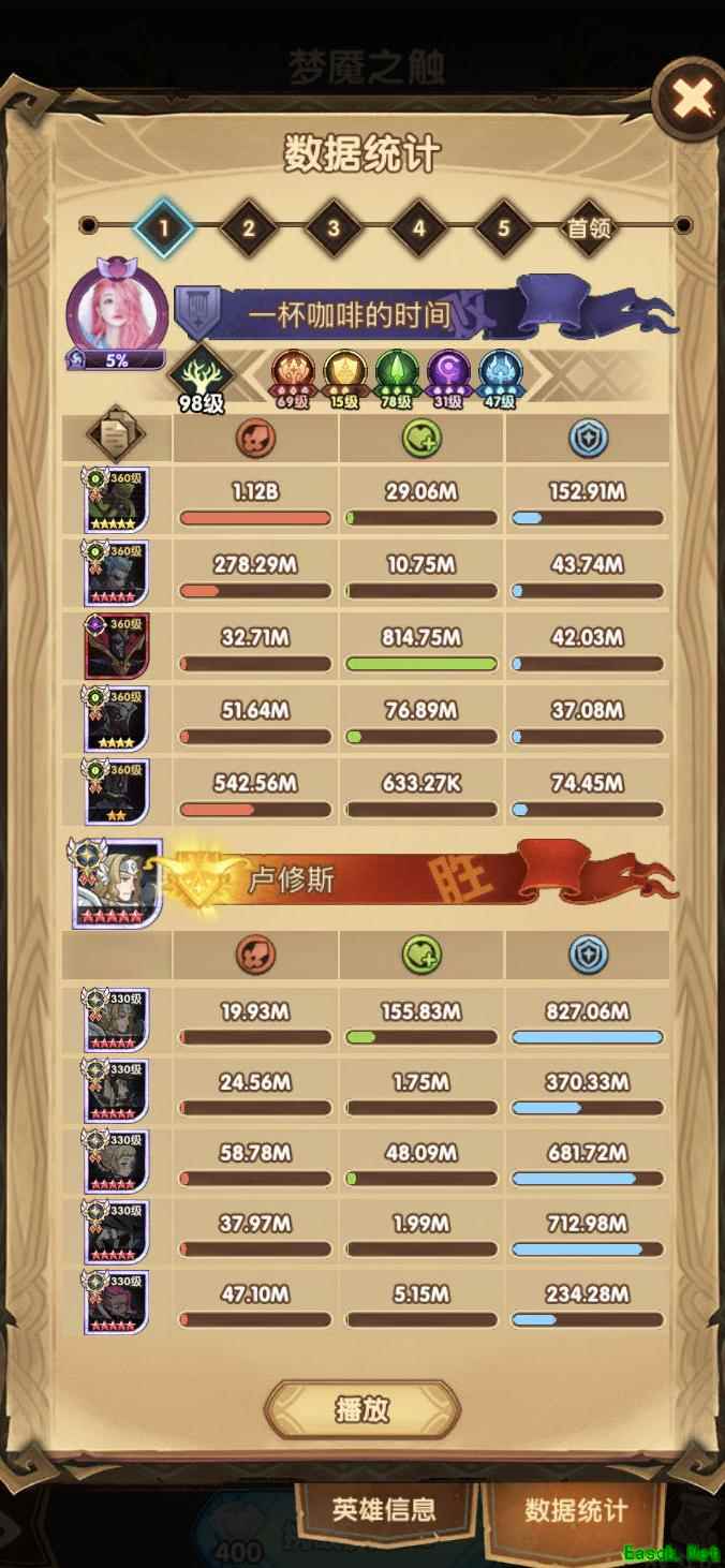 第二天队伍因缺少30级鬼医,首日亡灵阵容输出大减。幸得高练度船长佣兵支援,感谢嘟嘟世界协助调整阵容,替换禁卫后伤害达3B,生化人顺利脱衣。