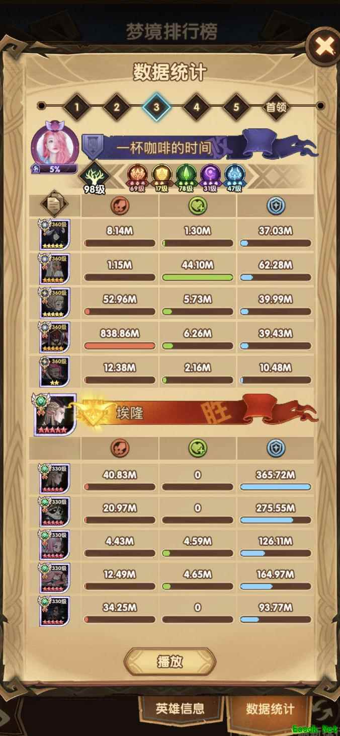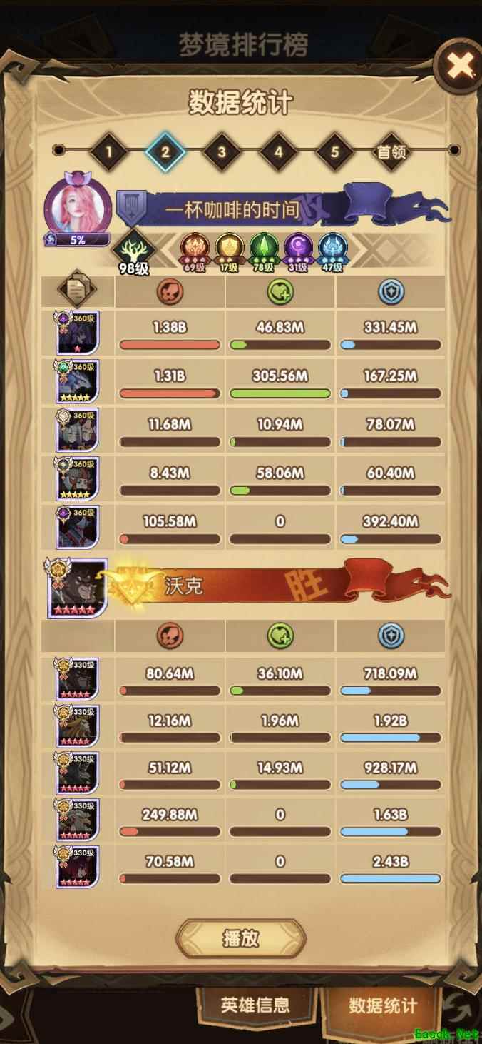 第二队挑战了1至5层,跳过3层boss,实际4层已很勉强。周四排名9.9%,已无望进入前10%。
