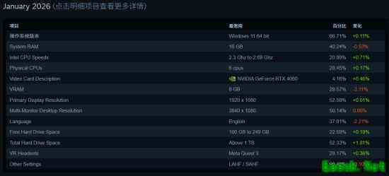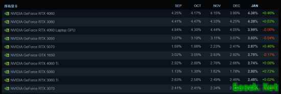2026年1月Steam硬件调查结果已正式公布,NVIDIA GeForce RTX 4060获得首位。