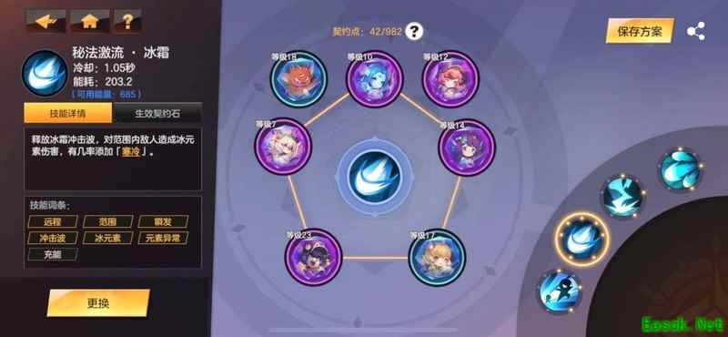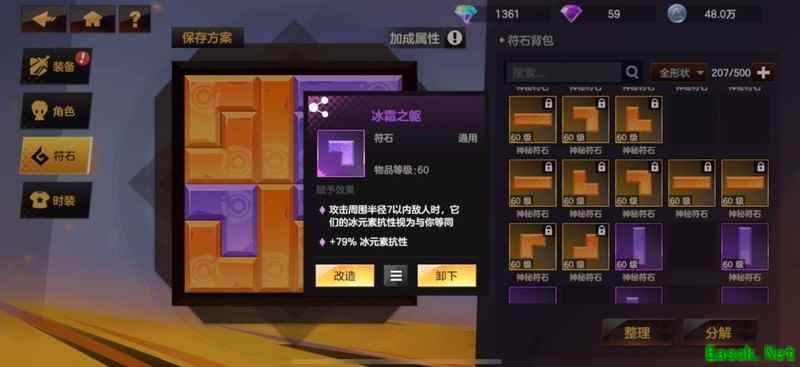 为必备核心符石,同时尽量降低自身的冰抗属性,以最大化带来的冰属性伤害输出。在符石选择上,优先考虑提升契约点的类型,因本套BD需凑满940契约点,单靠装备加成较难达成。其余符石可根据加成效果灵活搭配,选择收益较高的即可。