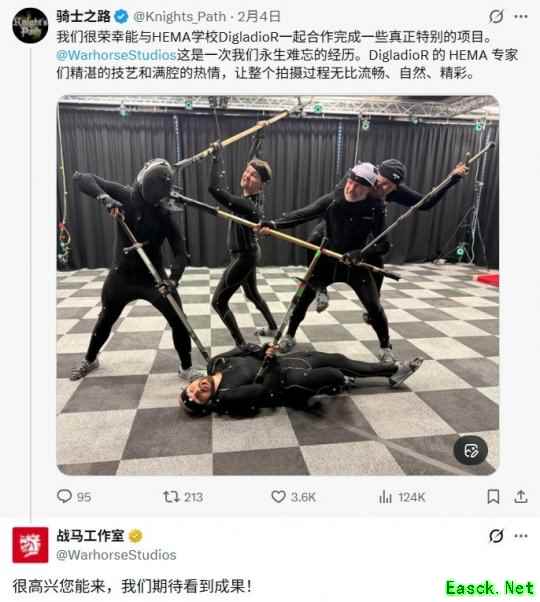 团队称来自DigladioR的欧洲历史武技大师们将直接参与动捕过程中。他们精湛的技艺将使《骑士之路》的开发者们创作出“无比流畅、自然且极具真实感”的动作动画。