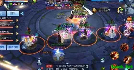 当提示白色光环区域可规避BOSS伤害时,队伍应迅速集中并向图示白色箭头方向移动。