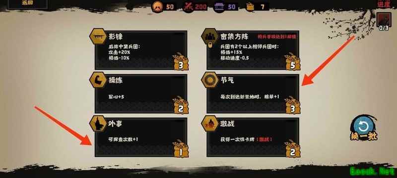 优先选择这两项政策,粮草不足时可探索补给。