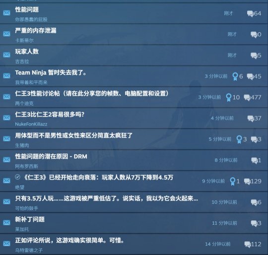 虽然没有采用D加密,但Steam讨论区还是有很多人反应《仁王3》的性能/优化问题: