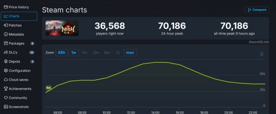 SteamDB统计显示,《仁王3》Steam在线峰值超过了7万: