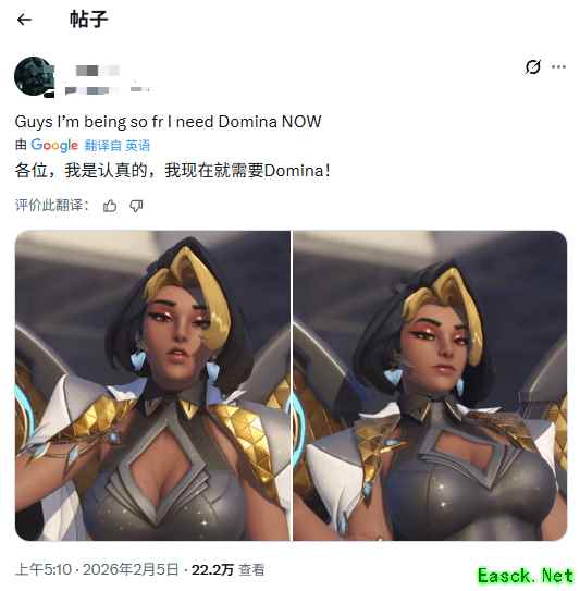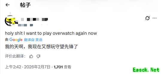 在公布后,有博主将“金驭”的服装换成了比基尼,有玩家表示:“各位,《守望先锋》终于回归了!”