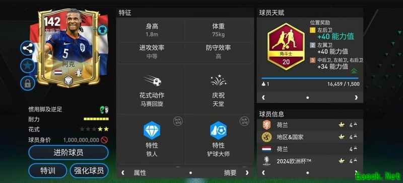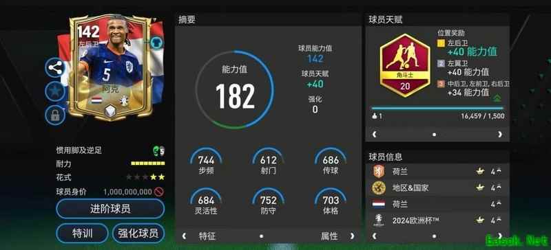 在FC足球世界中,阿克此前虽在赛季最佳和欧冠等活动中推出过热门卡牌,但整体仍属出场率较低的小众边后卫。此次欧洲杯活动,他迎来了基础能力值达142的欧洲杯甄选版本。接下来,让我们一同来看看这位荷兰飞翼在游戏中的具体表现如何。