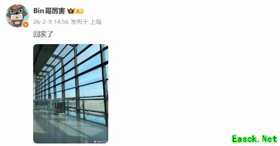 作为这两天的流量,《英雄联盟》BLG战队上单选手Bin今日终于“安静”了下来。在微博分享了一张航站楼的照片并配文:“回家了”。