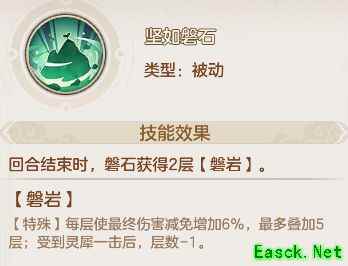 磐石的被动技能全面调整为提升自身生存能力,缺乏输出和辅助队友的效果,阵容搭配适应性较弱,但其优势在于可作为PVP中防守型阵容的关键组成。