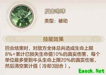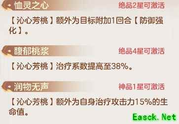 桃夭的被动技能调整为在回合结束时为生命值较低的英雄恢复状态,效果类似建木仙但较弱,适合在缺少建木仙时使用,中后期或可在PVP中作为防守型奶队的一员。