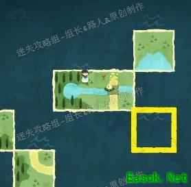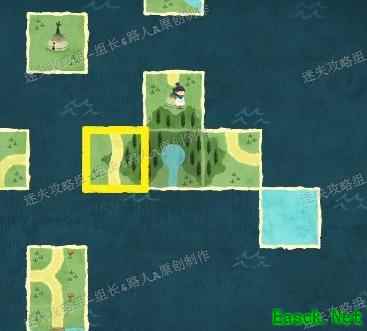 在森林区域存在解谜环节。每当成功拼接至少两块森林地块后,靠近该区域会出现一名孩童,他会指向另一片森林方向。根据提示,继续用森林地块连接其所指位置,逐步扩展森林范围。随着三处外围森林区块依次完成,中央会自动生成一片湖泊。随后前往湖边,与角色对话将触发剧情,获得一片叶子作为奖励。整个过程需循序渐进,依据线索不断延伸森林布局,最终达成目标形态。