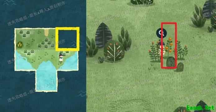 完成拼图后角色将刷新出现。与其对话可触发剧情并获得收集土壤的任务。所需土壤位于同时包含海洋、森林与草原的地块上,示意图已标明具体位置。在触发任务前,该地点仅显示为普通的小土堆,无特殊提示。