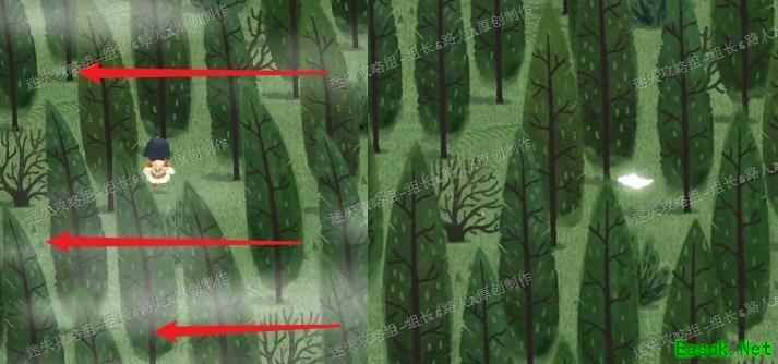 不必在意道路走向,那只是拼接时的干扰,只需顺着枯树指引的方向前行,无路时便穿行森林。