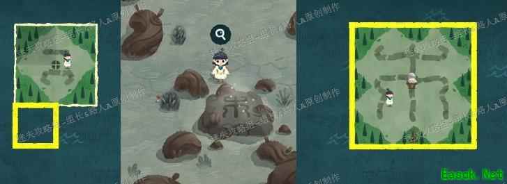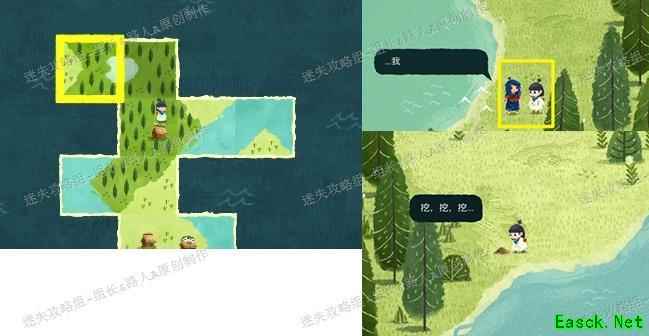 进入第二个树洞后,先将地图拼成指定形状,再由专家清理土块。